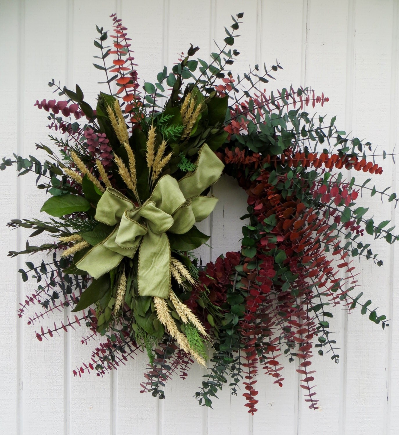 Lush lifelike foliage abounds on this four-season wreath that is covered in trendy succulents and eucalyptus leaves. Эвкали́пт прутови́дный — вечнозелёное дерево, вид рода Эвкалипт (Eucalyptus) семейства Миртовые (Myrtaceae).
