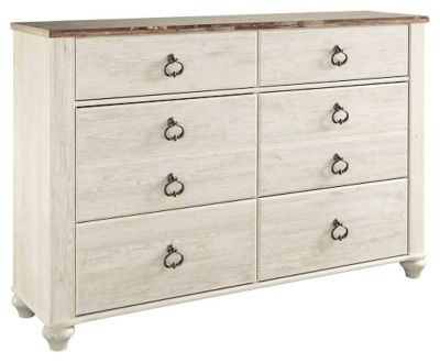 Paired with the unique plank-style top, it's a driftwoody look that has our minds drifting away to beachy-keen escapes. Ashley Furniture Signature Design - Willowton. Made of engineered wood Willowton Dresser The Willowton Dresser by Ashley Furniture is the ultimate statement piece for a coastal cottage or shabby chic inspired retreat.