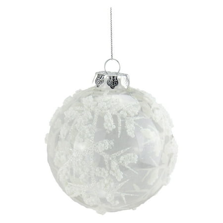 Northlight White Glitter Beaded Glass Ball Christmas ...