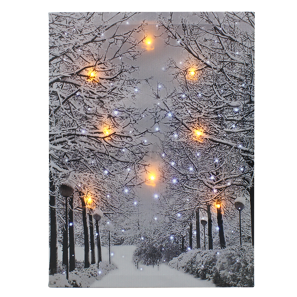 Framed LED Tree Snow Lighted Canvas Painting Print Home ...