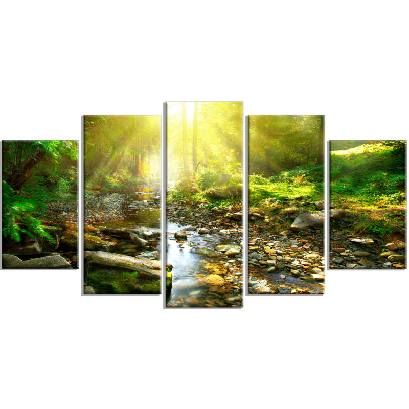 DesignArt 'Mountain Stream in Forest' 5 Piece Wall Art on ...