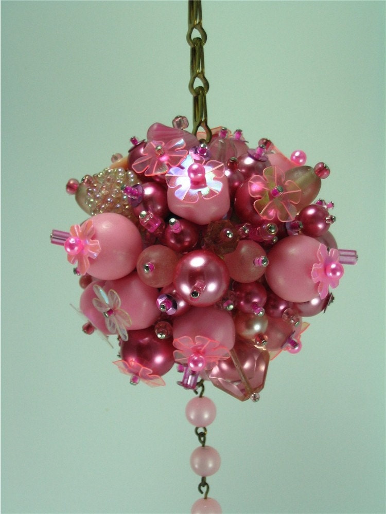 Funky Pink Beaded Christmas Ornament Ball and Chain by slvilov