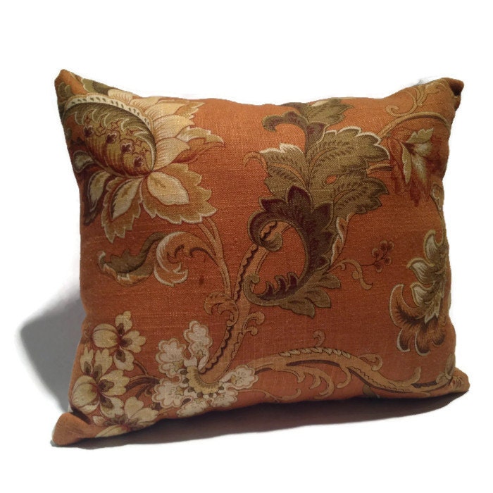 Linen Floral Orange and Green Decorative Throw Pillow Home