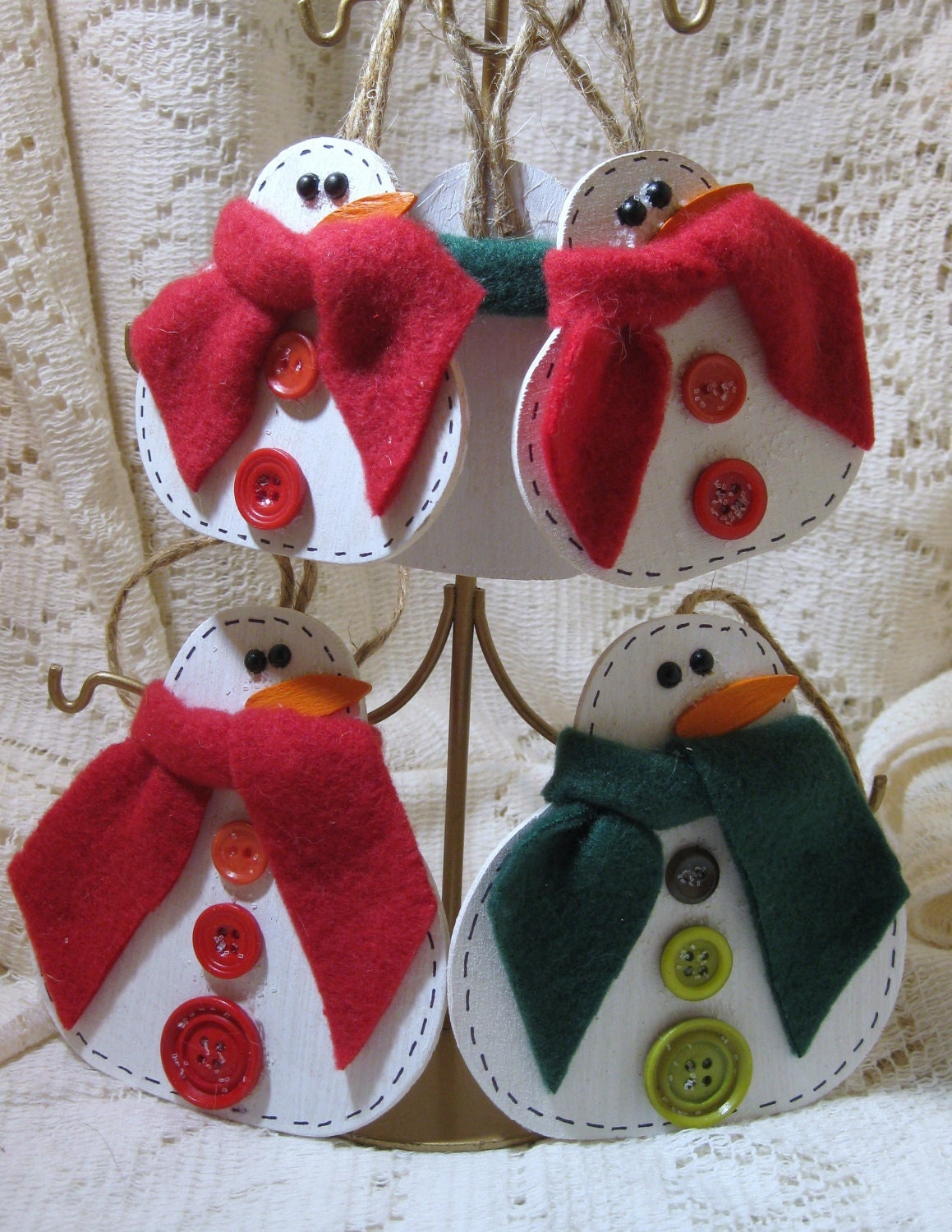 Christmas Holiday Wooden Snowmen Ornaments or Tags Set of 5